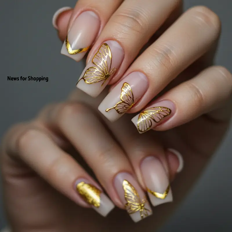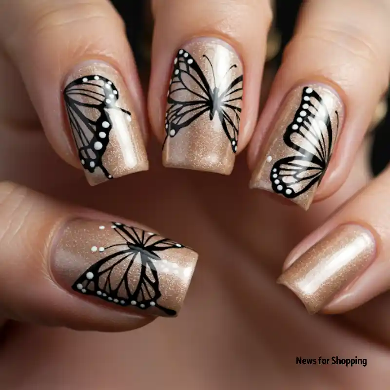 1. Champagne Whimsical Butterfly Nails