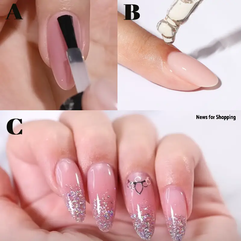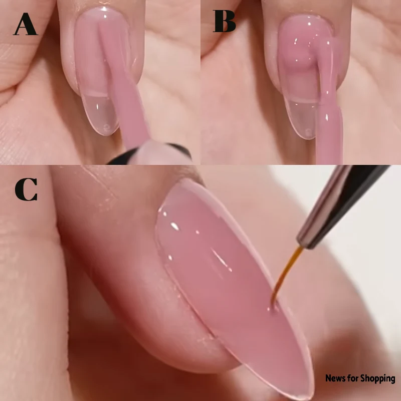 - Apply a thin layer of builder gel to ensure a stronger bond between your nail base and gel extensions. Cure it under the lamp for 30 seconds.